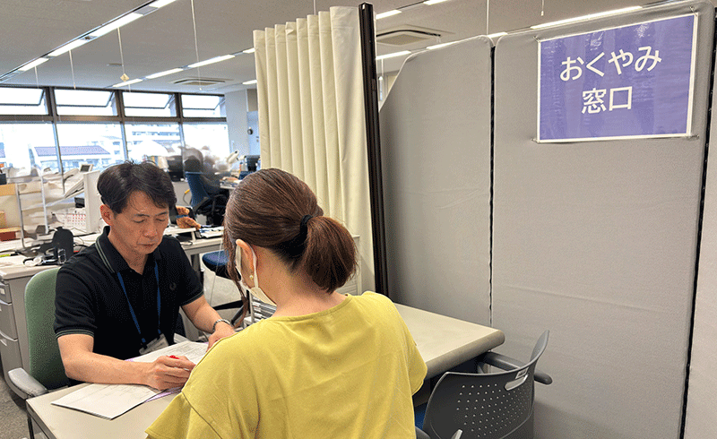 死亡後の手続きをまとめて案内できる「おくやみコーナー」の開設・運営支援を行っている。手続きに必要なシステムの提供や設置支援、設置要綱の作成、運用効果測定まで、多角的な視点をもとにサポートする。